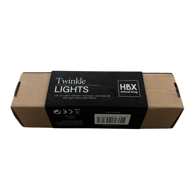 Breng een magische sfeer in huis met deze Twinkle Lights. De 120 subtiele warmwitte LED-lichtjes vormen een verfijnde lichtbundel die elke ruimte een gezellige en sfeervolle uitstraling geeft. Met 8 standen bepaal jij de sfeer: van rustig fonkelend tot helder en stralend. De timerfunctie zorgt ervoor dat de lampjes automatisch aan en uit gaan, terwijl de dimmer je de vrijheid geeft om precies de juiste lichtsterkte te kiezen. Perfect voor sfeerdecoratie binnenshuis. Werkt op 4 AA batterijen (niet inbegrepen).