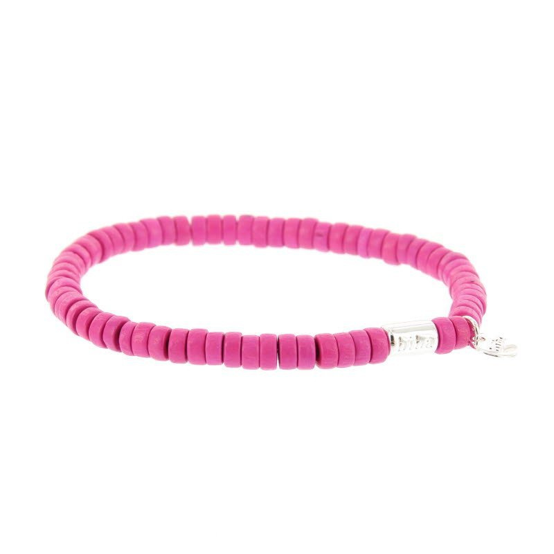 Deze armband van Biba is een stijlvol en speels accessoire dat direct opvalt door zijn levendige kleur. De armband is gemaakt van fuchsia houten kralen die zorgen voor een warme, natuurlijke uitstraling met een trendy twist. Tussen de kralen bevindt zich een zilverkleurige kraal, die een subtiel contrast en een verfijnde touch toevoegt. Doordat de armband elastisch is, is deze makkelijk zelf om en af te doen. Het zilverkleurige Biba labeltje geeft het geheel een herkenbare en luxe afwerking. Leuk voor jezelf maar natuurlijk ook leuk om aan iemand cadeau te geven.