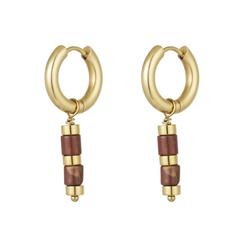 Houd jij ook van een prachtige oorbellen party? Shop dan snel deze gouden oorbellen met gouden en rood/bruine kraaltjes! Mega trendy en daarnaast perfect te combineren met meerdere subtiele oorbellen voor een prachtige ear party. Ook leuk om deze oorbellen te combineren met meerdere sieraden met kraaltjes. Dankzij het gebruik van roestvrij staal blijven de oorbellen lang mooi en verkleuren ze niet.