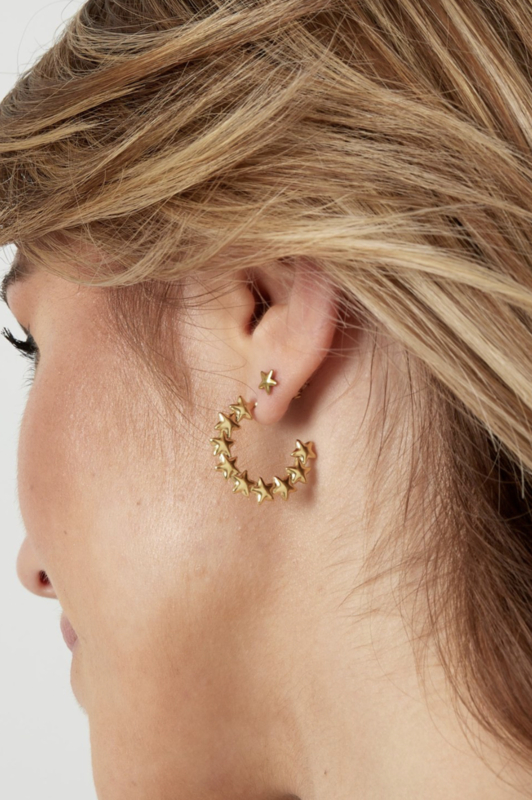 Houd jij ook van een prachtige oorbellen party? Shop dan snel deze gouden oorbellen met sterretjes! Niet alleen leuk om met de feestdagen te dragen. Ook leuk om deze oorbellen te combineren met meerdere sieraden met kraaltjes. Dankzij het gebruik van roestvrij staal blijven de stekers lang mooi en verkleuren ze niet.