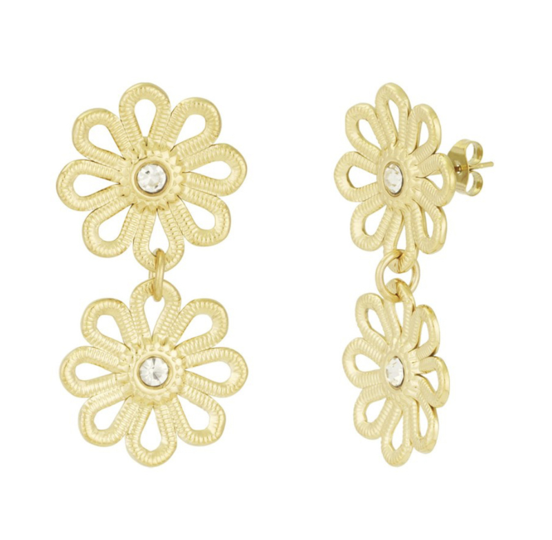 Houd jij ook van een prachtige oorbellen party? Shop dan snel deze gouden oorbellen met vrolijke bloemenl De stekers zijn gemaakt van stainless steel, wat betekent dat het sieraad 100% waterproof is.