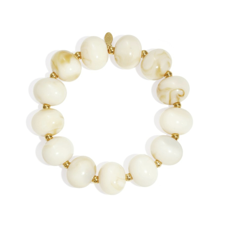 Hoe leuk is deze speelse armband met grote kralen met een marmer look en goudkleurige stainless steel kraaltjes. De elestische pasvorm zorgt voor optimaal draagcomfort en maakt deze armband geschikt voor de meeste polsen. De armband is gemaakt van Stainless Steel.