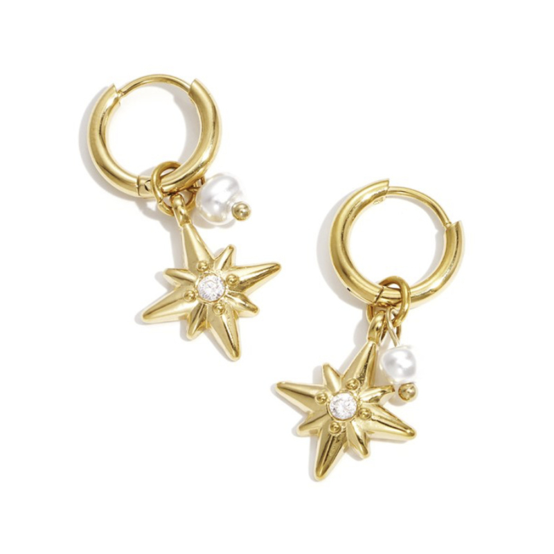 Deze goudkleurige oorbellen van roestvrij staal zijn een subtiele eyecatcher. De hanger en het pareltje geven een vrouwelijke en luxe uitstraling, terwijl het tijdloze ringetje zorgt voor een elegante afwerking. Perfect om zowel dagelijks te dragen als bij een speciale gelegenheid. Dankzij het gebruik van roestvrij staal blijven de oorbellen lang mooi en verkleuren ze niet.