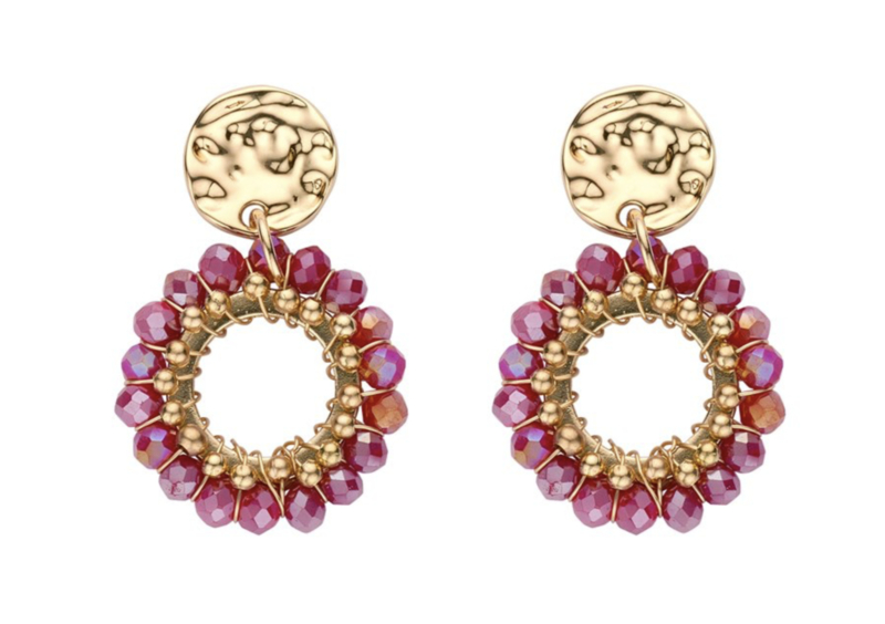 Voeg een speelse en elegante touch toe aan je look met deze opvallende oorbellen van Biba. De goudkleurige hoops zijn verfijnd afgewerkt en versierd met een trosje glanzende kralen in rode tinten, wat zorgt voor een chique uitstraling. Dankzij het lichte ontwerp zijn deze stekers comfortabel om te dragen. Perfect voor bij zowel een dagelijkse outfit als een feestelijke gelegenheid.